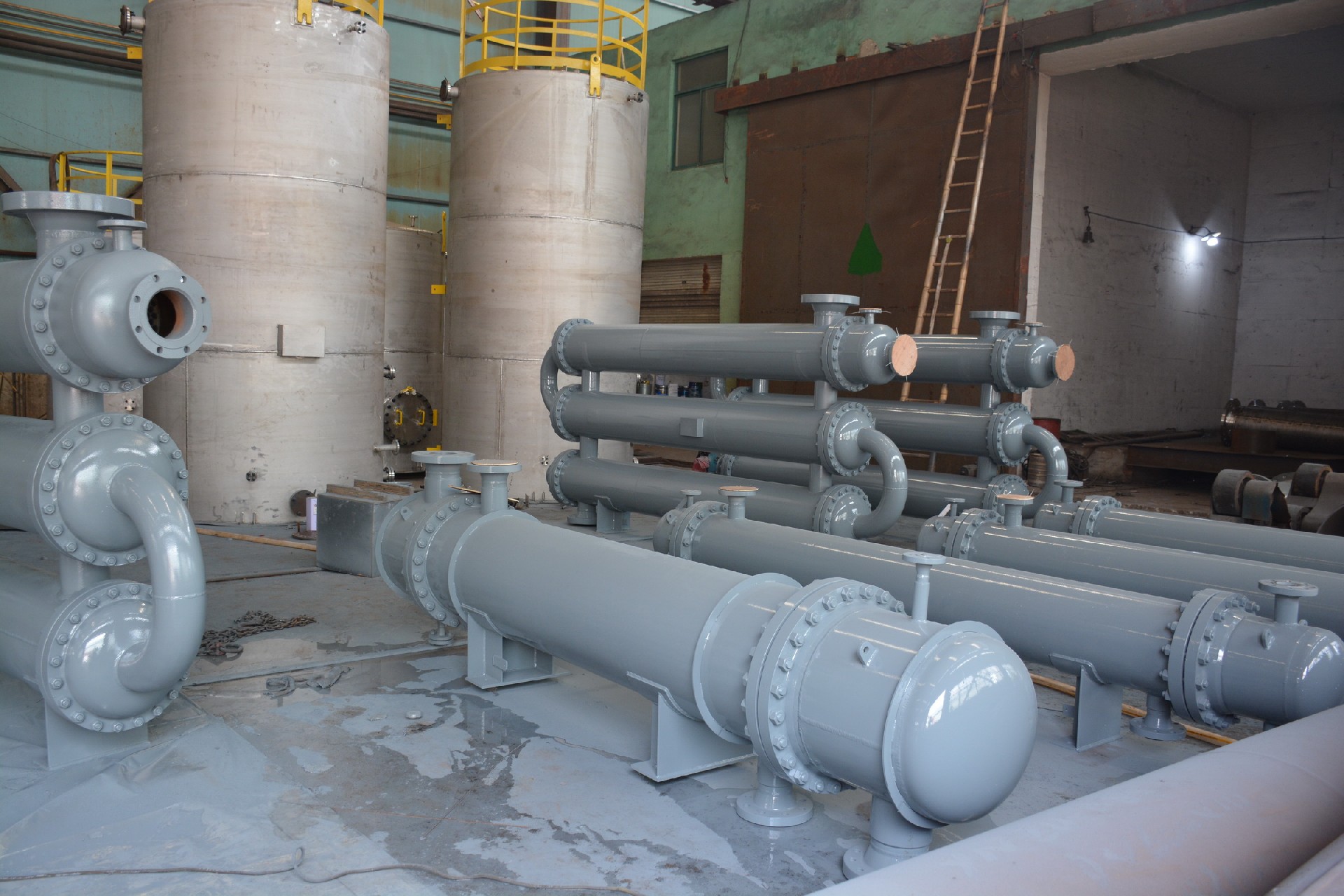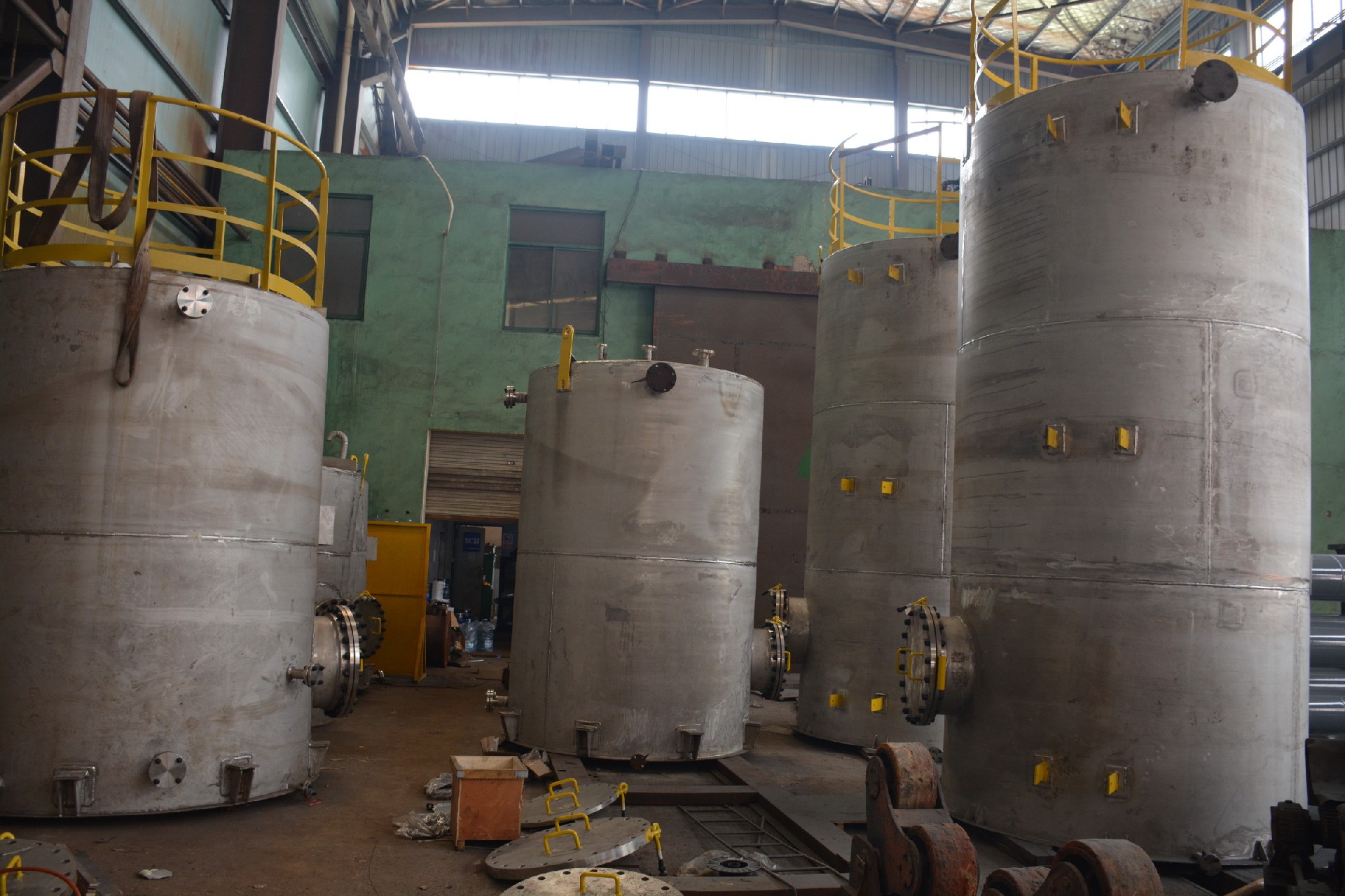 容器类产品有:核电压力容器,换热器,塔器,高压容器,大型储罐,升温加热炉,反应釜,大型发酵罐,螺旋板式换热器,其他槽罐、分离器等,化工成套设备,合成氨尿素设备,还原蒸馏反应器,化纤工程压力容器。